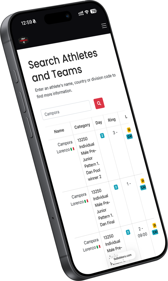 With just one quick search you can instantly find your athlete or team, see their category and division, check match dates and times, know which ring they’re competing in, and access official SportData draws. 🤯